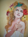 2010Vrouw met bloemen in het haar geeft een gevoel van lente
